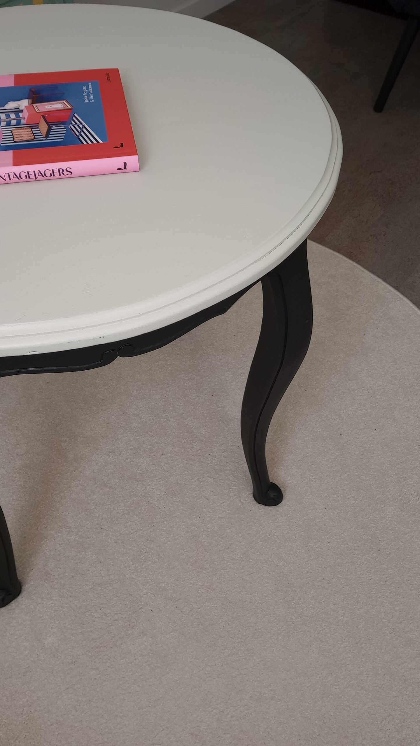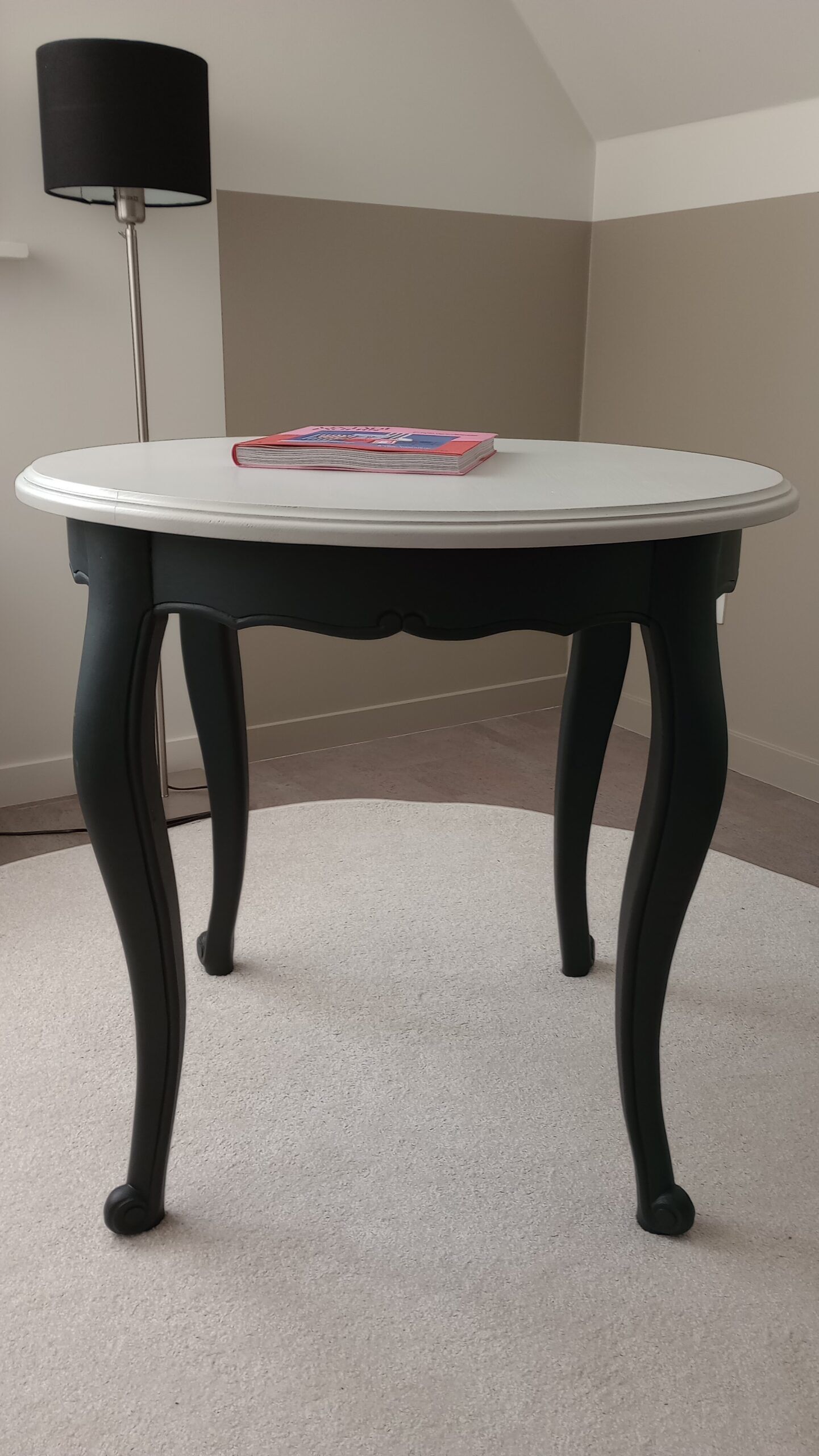 Dit tafeltje in de Queen Anne-stijl werd in een modern jasje gestoken. De pootjes zijn geschilderd in een eigentijdse grijszwarte kleur, terwijl het bovenblad is voorzien van een stijlvolle lichtgrijze lak. Deze kleurtransformatie geeft dit meubeltje een trendy uitstraling die perfect past bij jouw interieur.